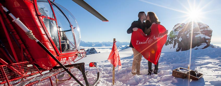 You want to make a very special marriage proposal to your partner? Then fly by helicopter to one of your own preferred place or let us advise you. Your proposal will be an unforgettable experience and celebrate a unique engagement!